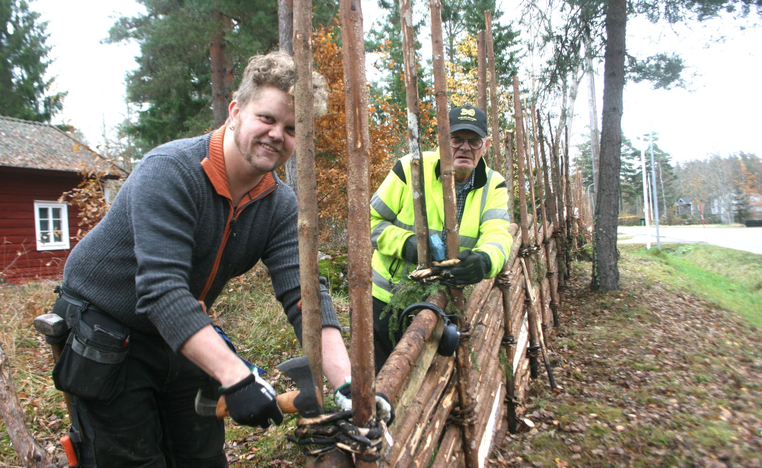 Att ersätta den gamla, uttjänta gärdesgården vid Östervåla hembygdsgård med en ny påbörjades i mitten av september som en del i ett projekt, där starten var en kurs i just gärdesgårdsbyggande. Sammanlagt tolv personer deltog i kursen och under hösten har arbetet med uppsättningen av sammanlagt cirka 250 meter gärdesgård slutförts av deltagare på kursen – och på tisdagen sattes de sista metrarna på plats av ortsborna Einar Johansson och Lennart Åhgren.