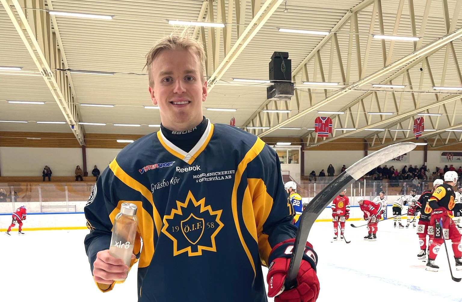 – Det var en riktigt rolig match. Dels för att alla i laget värmde upp med respektive moderklubbtröja, och det var speciellt för mig att dra på sig Vålatröjan, som är världens finaste tröja. Dels att få möta Enköpingslaget med Östervålabekantingarna, det var kul, säger backspelaren Hugo Lindman Gustafsson, hockeyfostrad i ÖIF.