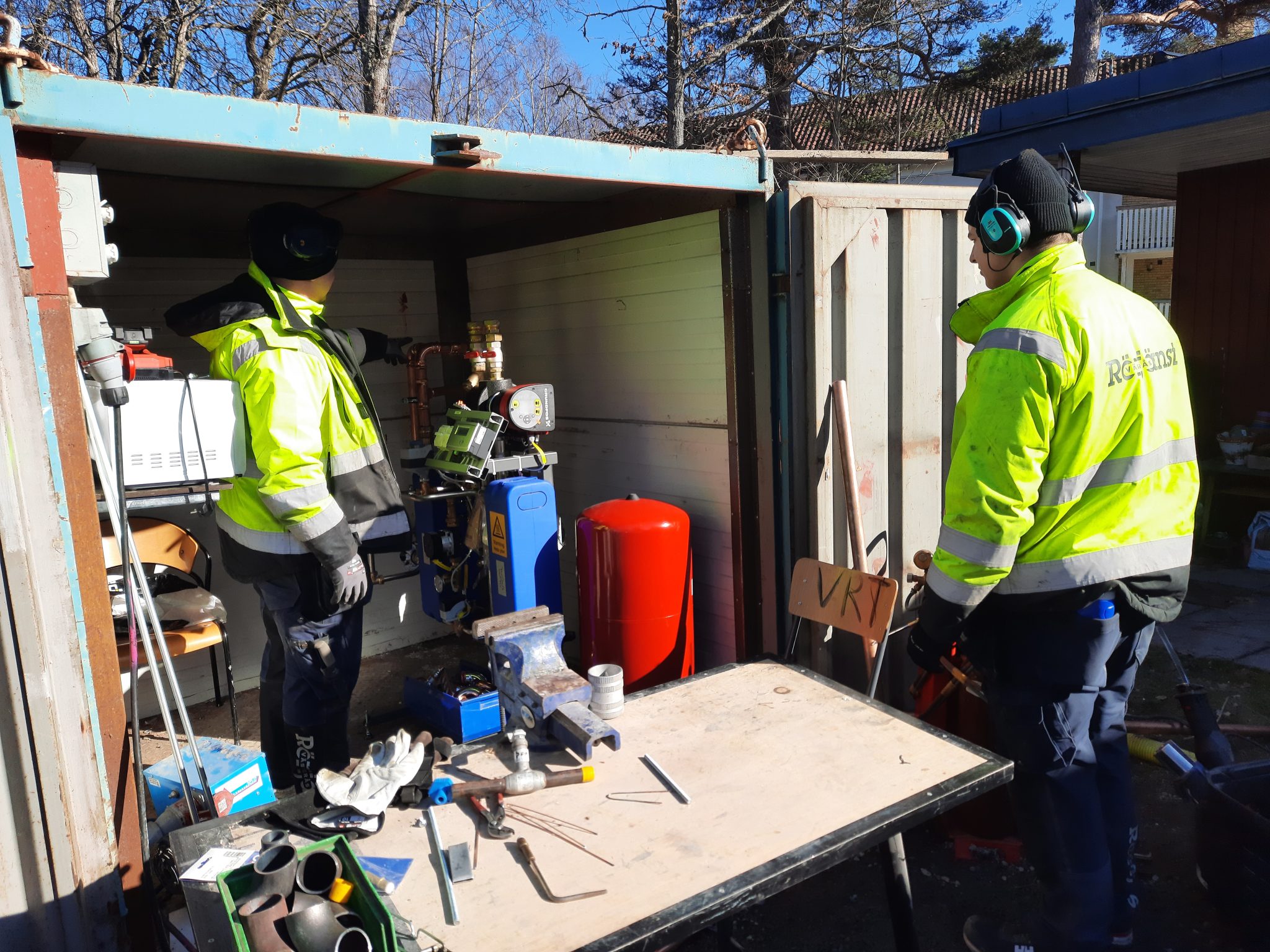 – Vi har arbetat med det här i ungefär en vecka, och börjar bli klara nu. Just nu återstår för oss att plugga den gamla vattenledningen och göra inkörningen av den tillfälliga fjärrvärmeanläggningen, berättar en av rörmokarna vid Västerås Rörtjänst, som står för jobbet.