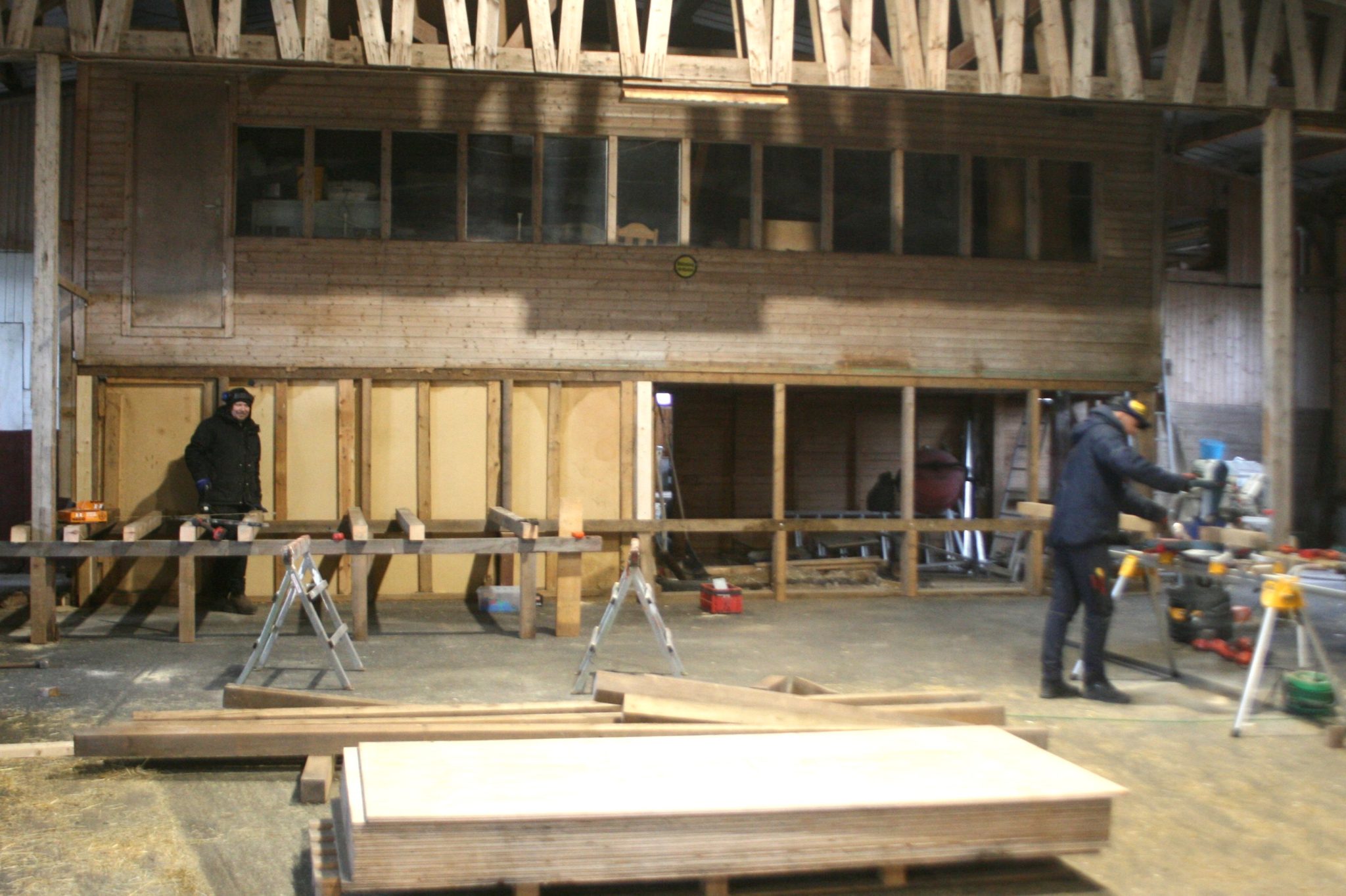 När OrtsAktuellt hälsar på är det framför allt bygget av scenen som pågår i maskinhallen, som i färdigt skick kommer att vara på 5 x 9 meter.