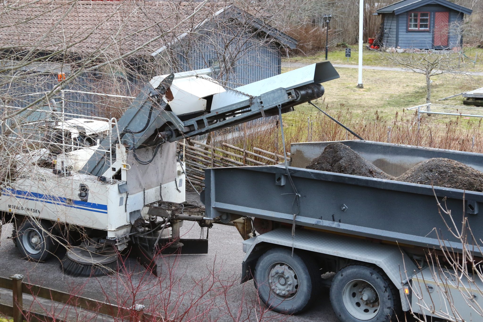 På måndagen drog årets upptagning av sand igång på allvar, exempelvis längs gatorna i Harbo samhälle. Sammanlagt 700 ton sand ska sopas upp från kommunens gator innan arbetet är klart.